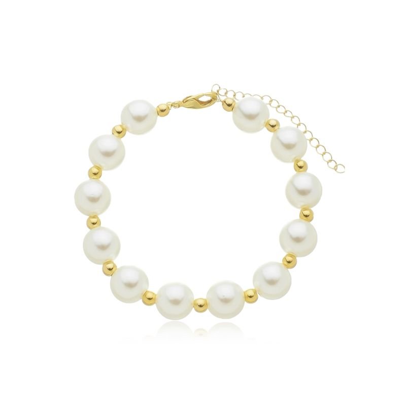 PULSEIRA PÉROLAS E BOLINHAS DOURADO FOLHEADO