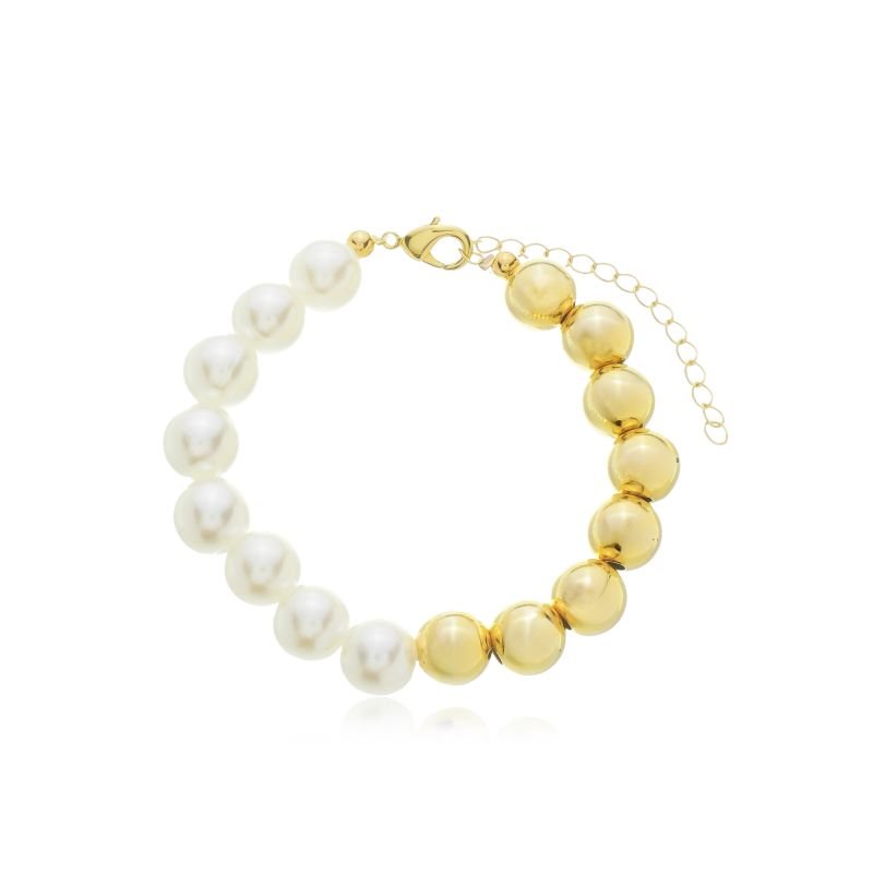 PULSEIRA PÉROLAS E ESFERAS 10MM BANHADO A OURO 18K