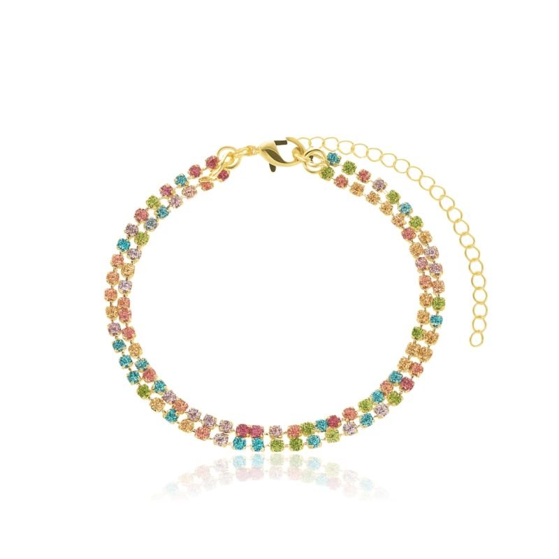 PULSEIRA RIVIERA DUPLA COLORIDA BANHADO A OURO 18K