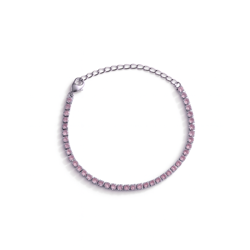 PULSEIRA RIVIERA ZIRCÔNIA ROSA 2,5MM PRATEADO
