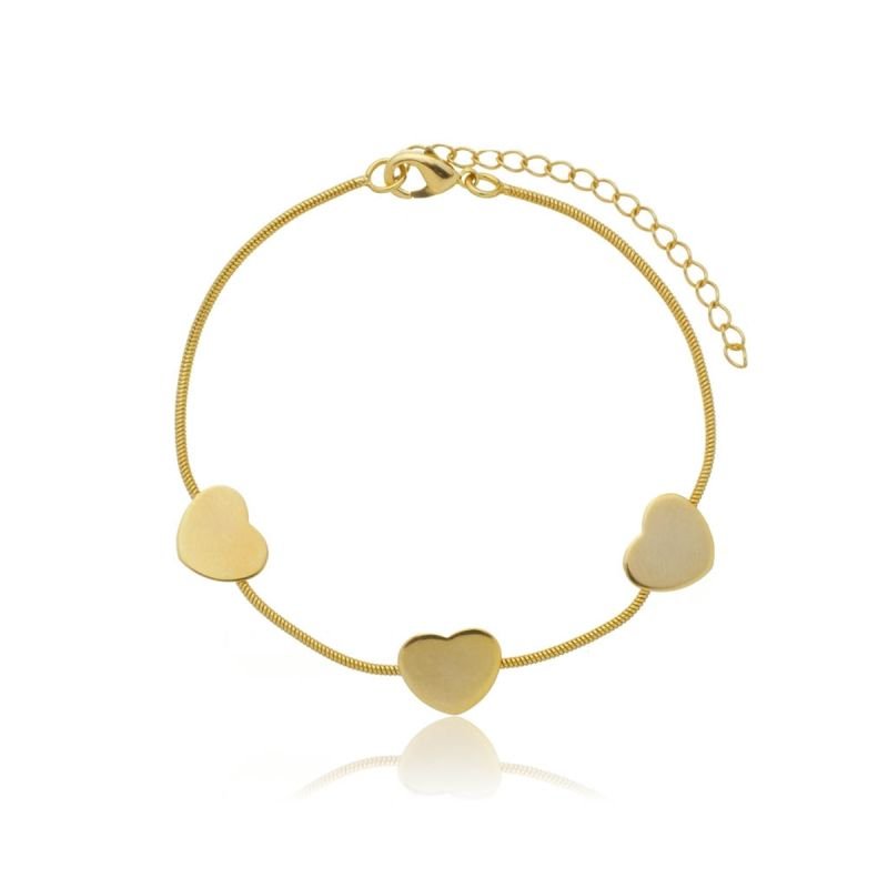 PULSEIRA TRÊS CORAÇÕES RABO DE RATO DOURADO FOLHEADO