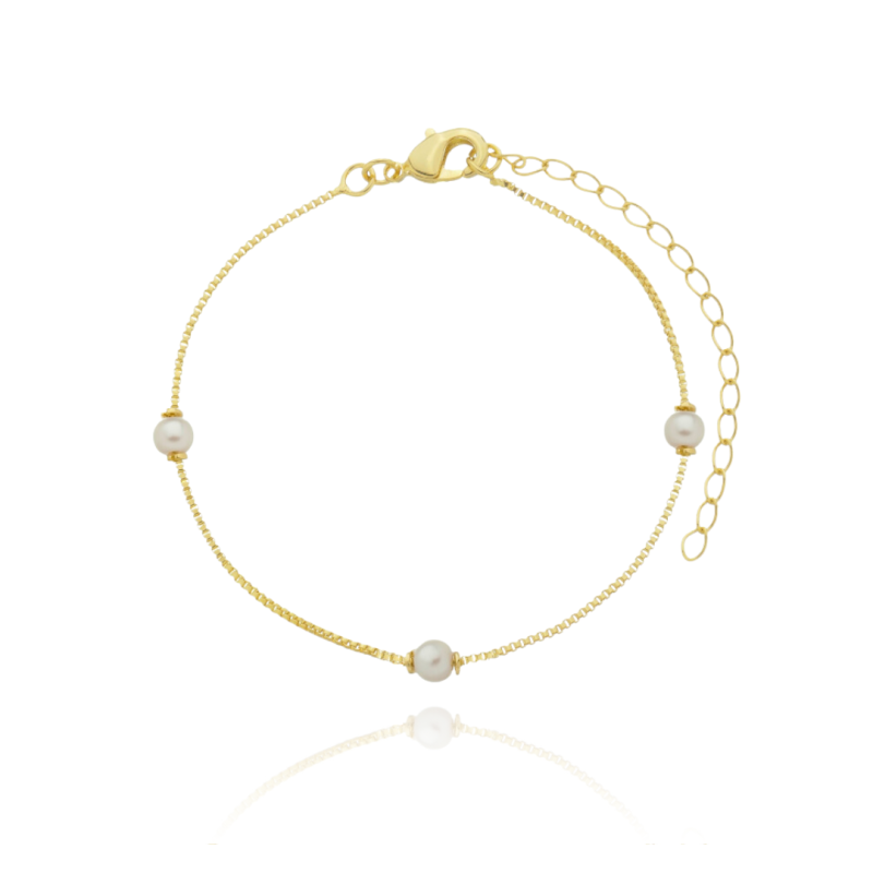 PULSEIRA TRÊS MINI PÉROLAS AFASTADAS BANHADO A OURO 18K