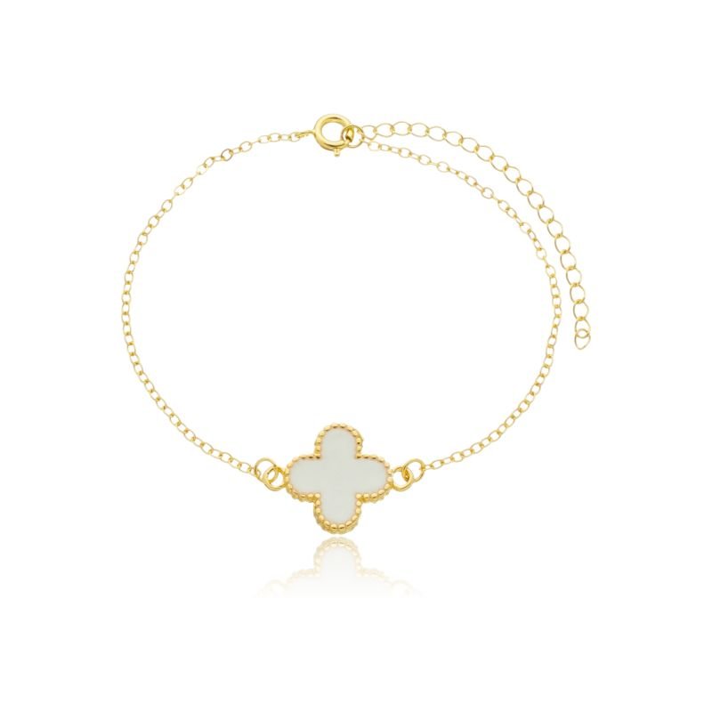 PULSEIRA TREVO BRANCO DOURADO FOLHEADO
