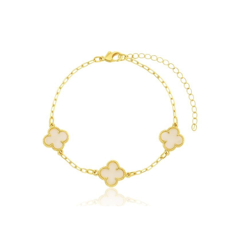PULSEIRA TREVO BRANCO 11MM BANHADO A OURO 18K
